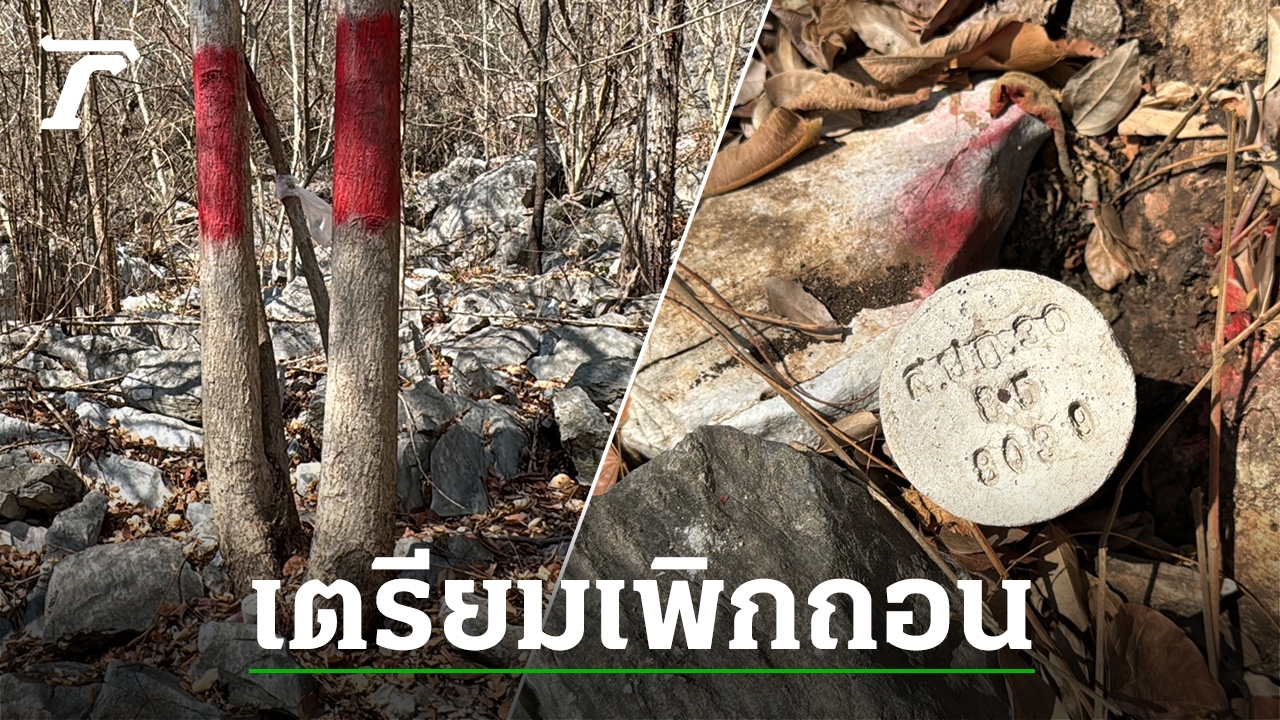 ป่าไม้สำนัก 8 นครราชสีมา ตรวจหมุด ส.ป.ก. โผล่บนภูเขาในป่าสงวน สวนป่าปางอโศก ต.กลางดง อ.ปากช่อง เคยเป็นดงต้นเสียด ถูกโค่นทิ้ง มีหมุด ส.ป.ก.4-01 อยู่บนภูเขา มีบ้านหลังใหญ่ มีสระว่ายน้ำ พยายามให้เห็นว่าทำประโยชน์ ทำการเกษตร ปลูกมะม่วง ขนุน แทรกในร่องหิน