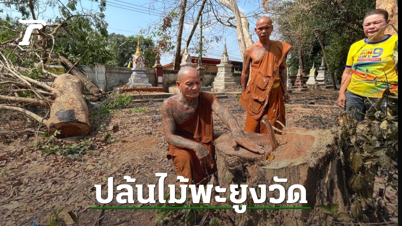 กลุ่มโจรที่วารินชำราบ เลือกคืนก่อนมาฆบูชา เข้าไปในวัดใช้เลื่อยยนต์ตัดต้นพะยูงยักษ์แบบไม่เกรงใจพระ หลวงพ่อตื่นมาเอ็ดตะโร กลับโชว์ปืนขู่ ขนไม้ขึ้นรถหลบหนีลอยนวล