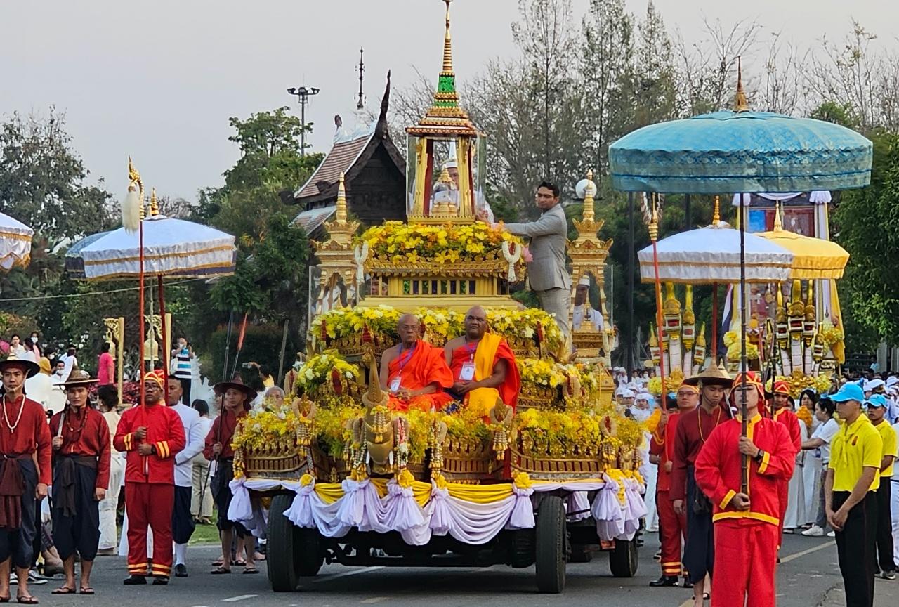 จ.เชียงใหม่จัดริ้วขบวน อัญเชิญพระบรมสารีริกธาตุและพระอรหันตธาตุพระสารีบุตรและพระโมคคัลลานะ ขึ้นสู่มณฑปในหอคำหลวง อุทยานหลวงราชพฤกษ์ ให้ประชาชนได้สักการะในวันที่ 5-8 มีนาคม 2567 ตั้งแต่เวลา 08.00-21.00 น.