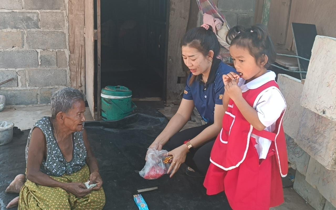 นางโสภิณ โยกระโทก และ น.ส.จีรภา ชมนาวัง คุณครูผู้ดูแลเด็กภายในศูนย์เด็กเล็กสันติสุข กล่าวว่า คุณยายแดงนั้นมองแทบไม่เห็นเรียกว่าบอดเลยก็ได้ ตอนนี้จะคอยดูแลน้องแป้งเวลาที่มาอยู่ในศูนย์ฯ แบ่งเบาภาระด้วยการไปรับไปส่ง จัดอาหารที่เหลือจากที่เด็กกินฝากไปให้บ้างในบ้างครั้ง หากไม่มีก็จะลงขันกันซื้อหาไปให้เพื่อลดภาระค่าใช้จ่ายของคุณยายแดงให้ได้มากที่สุด