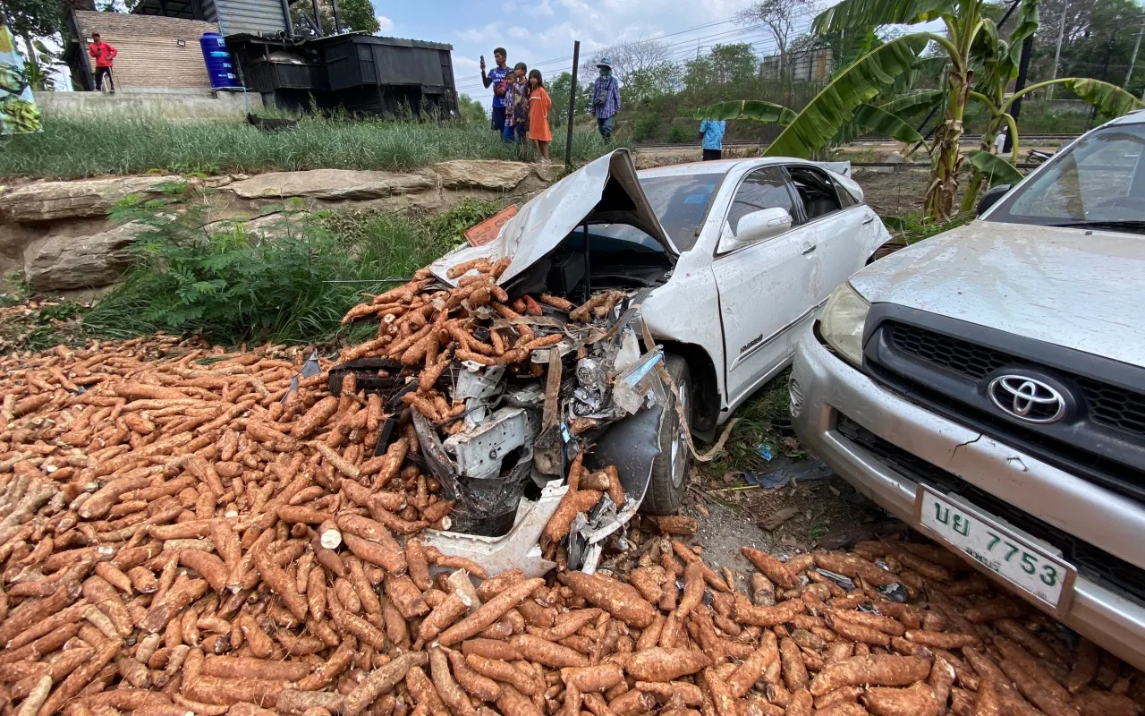 จุดเกิดเหตุเป็นชุมชนหนองกระจะ เขตเทศบาลเมืองปากช่อง จ.นครราชสีมา ก่อนจะเข้าสถานีรถไฟปากช่อง ประมาณ 300 เมตร กำลังก่อสร้างรถไฟทางคู่ และรถไฟความเร็วสูงตัดกับทางรถยนต์ พบรถสิบล้อบรรทุกหัวมันสำปะหลัง ติดป้ายธงชัยการเกษตร ทะเบียน 82-1601 สระแก้ว พลิกคว่ำเทกระจาด หัวมันกระจัดกระจาย ชนกวาดรถเก๋ง รถกปิกอัพ จยย.ที่จอดรอข้ามทางรถไฟ เบื้องต้นมีผู้บาดเจ็บถูกนำส่ง รพ. 10 คน อาการสาหัส 3 คน 1 ในนั้นเป็นหญิงท้องแก่