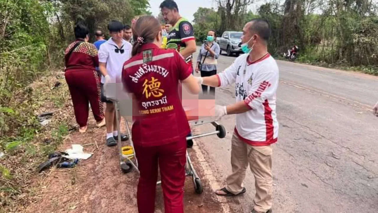 หนุ่มใหญ่ซิ่งกระบะ เสียหลักหลุดโค้งพุ่งชนประสานงารถ จยย. ตายทันทีทั้งคนขี่และคนซ้อนท้าย 2 ศพ ส่วนโชเฟอร์ปิกอัพบาดเจ็บ บริเวณถนนหนองหาน จ.อุดรฯ