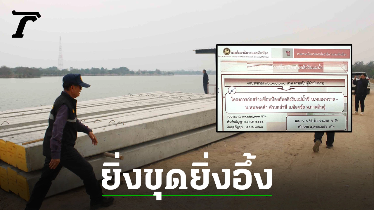 กาฬสินธุ์ ยิ่งขุดยิ่งอึ้ง แฉงบสร้างเขื่อนป้องกันตลิ่งของกรมโยธาธิการ 39 ล้านบาท ผลงาน 0% แต่ "รับเหมาขาใหญ่" เบิกเงินแล้วเกือบ 6 ล้าน ขณะที่หน่วยงานตรวจสอบที่เกี่ยวข้อง ตั้งข้อสังเกตถึงความไม่ปกติแล้ว