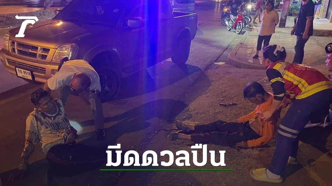 รองสวป.เมืองอุดรธานี จอดรถปิกอัพขวางหน้าบ้าน โดนพ่อเฒ่า 72 ถือมีดมาแทงไส้ไหล ตัวเองก็โดนปืนตำรวจยิงสวน บาดเจ็บสาหัสทั้งคู่