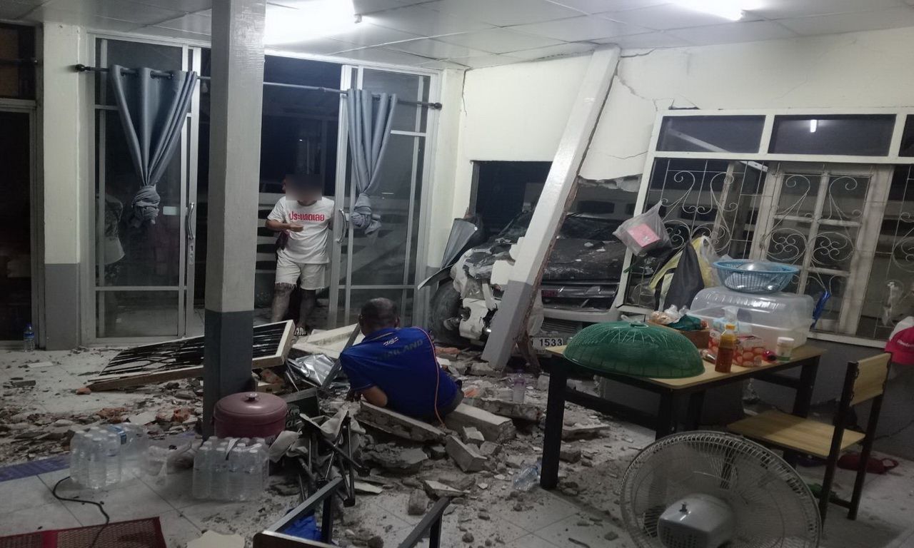 อุบัติเหตุเทศกาลสงกรานต์ 2567 ที่จังหวัดเลย หนุ่มเมาหนัก ซิ่งกระบะชนกำแพงปูนทะลุเข้าไปในบ้านจนพังเสียหาย ก่อนลงจากรถมานั่งมึนกลางบ้าน ตำรวจนำตัวไปตรวจวัดปริมาณแอลกอฮอล์