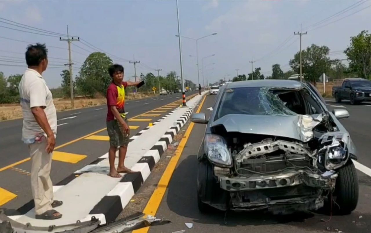 นายธนบูลย์ จันทกรณ์ คนขับรถยนต์เก๋ง เล่าว่า ตนได้ขับรถยนต์เก๋งคู่ใจมาจากอำเภอภูสิงห์ จ.ศรีสะเกษ จะเดินทางไปทำธุระที่จังหวัดขอนแก่น พอตนขับรถยนต์เก๋งมาด้วยความเร็วถึงบริเวณจุดเกิดเหตุ ไม่ทันสังเกตว่าได้มีรถจักรยานยนต์วิ่งตัดหน้ารถยนต์เก๋งตน ตนนั้นเบรกไม่ทัน จึงได้พุ่งชนรถจักยานยนต์อย่างจัง ตนเห็นร่างทั้งหมดกระเด็นลอยและร่างหนึ่งได้กระเด็นเข้ากระแทกกับกระจกรถตน ซึ่งตนได้ประคองรถยนต์เก๋งไหลมาห่างจากจุดเกิดเหตุประมาณ 150 เมตร ตนนั้นตกใจมาก ตั้งแต่ขับรถยนต์เก๋งมาไม่เคยชนใครเลย