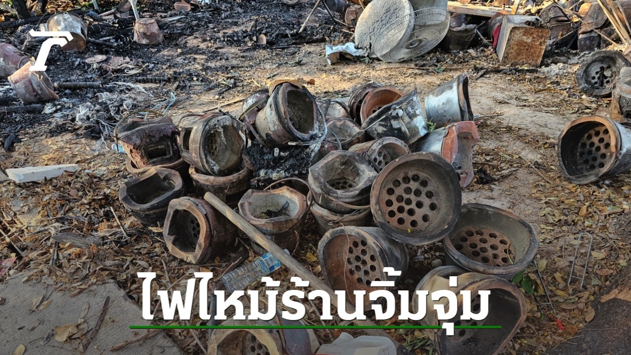 เกิดเพลิงไหม้ซุ้มหญ้าคาสำหรับเก็บเตาหม้อจิ้มจุ่มร้านในเมืองสุรินทร์วอดกลางดึก คาดพนักงานดับถ่านในเตาไม่สนิท พอมีลมพัด ประกอบกับอากาศร้อนและแห้ง ทำให้ไฟลุกไหม้ขึ้น