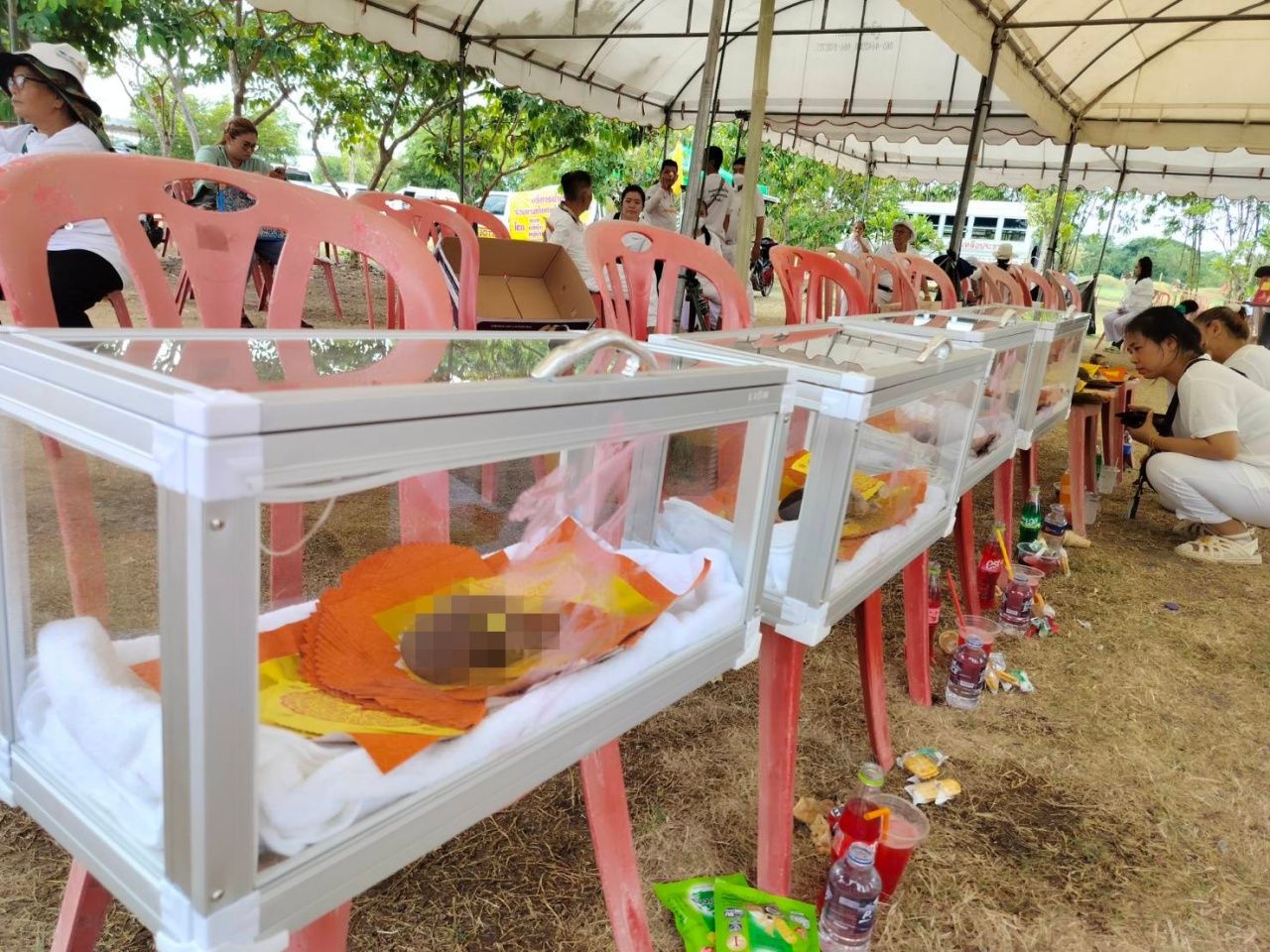 งานล้างป่าช้าจีนที่โคราช พบร่าง "อาจารย์ทอง" ชายเสียชีวิตในช่วงอายุประมาณ 60 ปี ไม่เปื่อย ไม่เน่า ร่างแรกรอบ 12 ปี พร้อมกุมารทอง กุมารี ลูกกรอกอีก 7 ร่าง ในวันเดียว