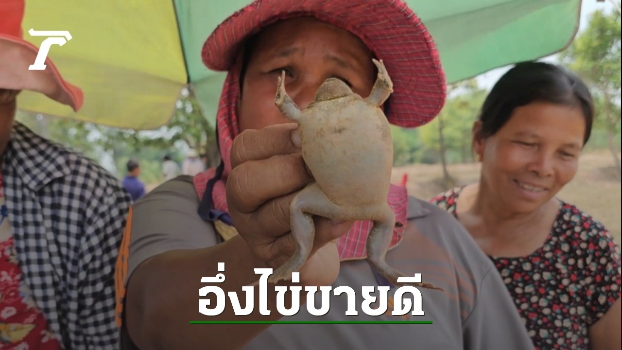 แม่ค้าที่สุรินทร์ รับ "อึ่งไข่" จากชายแดน อ.พนมดงรัก มาตระเวนขาย กก.ละ 350 บาท ชาวบ้านนิยมซื้อทำต้มยำอึ่ง เมนูสุดแซ่บหากินยาก มีให้กินปีละครั้งช่วงต้นฝน