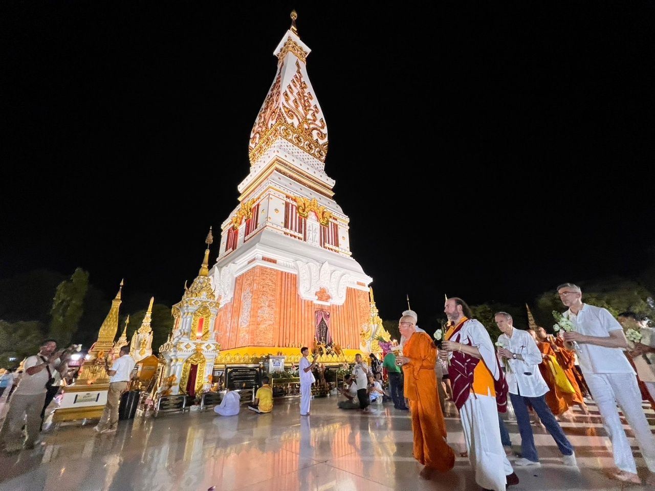 นครพนม พุทธศาสนิกชนไทย-ลาว แห่ต้นเงินวิสาขบูชา เวียนเทียนถวายเป็นพุทธบูชาองค์พระธาตุพนม ขอพรพระอุรังคธาตุ พระพุทธเจ้า วันสำคัญทางศาสนา อานิสงส์ยิ่งใหญ่จากพลังศรัทธา กระตุ้นเศรษฐกิจ ท่องเที่ยวเชิงธรรมะ