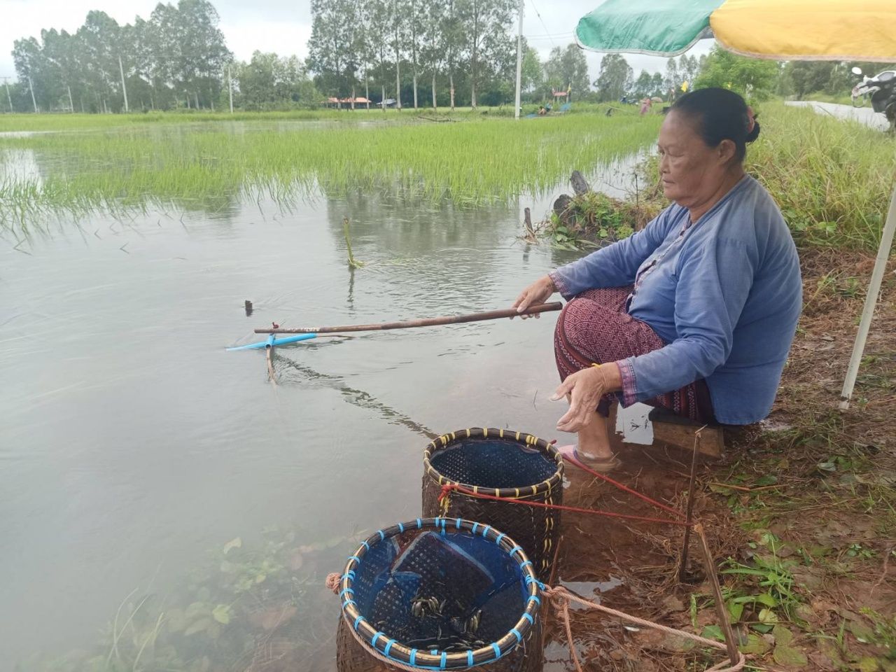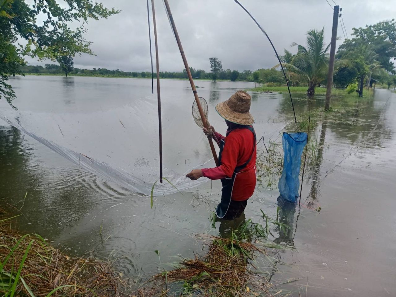 ขณะเดียวกันก็เป็นโอกาสดีให้กับชาวบ้าน พากันนำอุปกรณ์ เช่น สะดุ้ง มอง (ตาข่ายดักปลา) มายกยอและดักตาข่ายตามริมถนน และบริเวณท้องทุ่งนา เพื่อจับปลาขึ้นมาทำเป็นอาหาร เช่น ห่อหมก แกง ต้ม ตามแต่ชนิดปลาที่ได้ หากเหลือก็นำไปขายสร้างรายได้ ส่วนความเสียหายเบื้องต้นยังไม่มีรายงาน แต่อย่างใด
