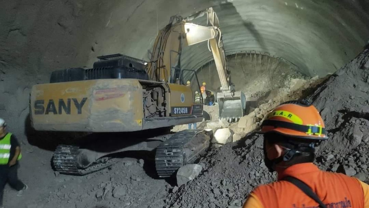 นครราชสีมา ทีมค้นหาและกู้ภัย USAR ปภ. ตรวจพบพิกัด รถแบ็กโฮและรถบรรทุกดิน ถูกดินถล่มทับอยู่ในอุโมงค์รถไฟความเร็วสูงไทย-จีน แล้ว อยู่ระหว่างทะลวงท่อแคสซิ่ง เข้าไปเพื่อค้นหาช่วย 3 คนงานที่ติดอยู่ในอุโมงค์อย่างเร่งด่วน ล่าสุดตรวจพบสัญญาณชีพ เพียง 1 ราย