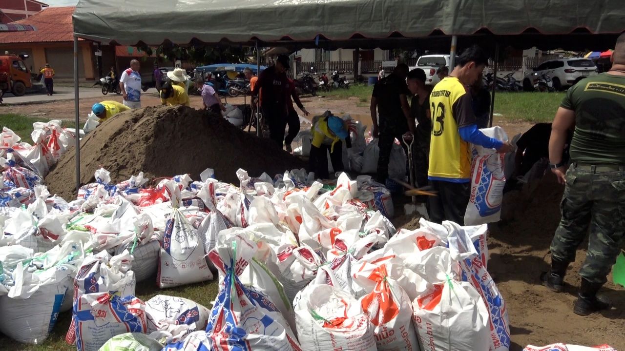 จากนั้นร่วมกับ ทหารจากกองพันทหารราบที่ 3 กรมทหารราบที่ 13 ทหารหน่วยพัฒนาการเคลื่อนที่ 26 ตำรวจ สภ.ปากคาด ตำรวจน้ำบึงกาฬ เจ้าหน้าที่เทศบาลตำบลปากคาด และประชาชนจิตอาสาร่วมกับกรอกกระสอบ เพื่อนำไปแจกจ่ายให้กับประชาชนที่ได้รับผลกระทบ รอบๆ ลานพญานาค และลงพื้นที่ตรวจเยี่ยมให้กำลังใจแก่ผู้ประสบภัยกว่า 30 หลังคาเรือน