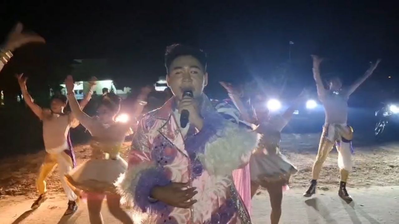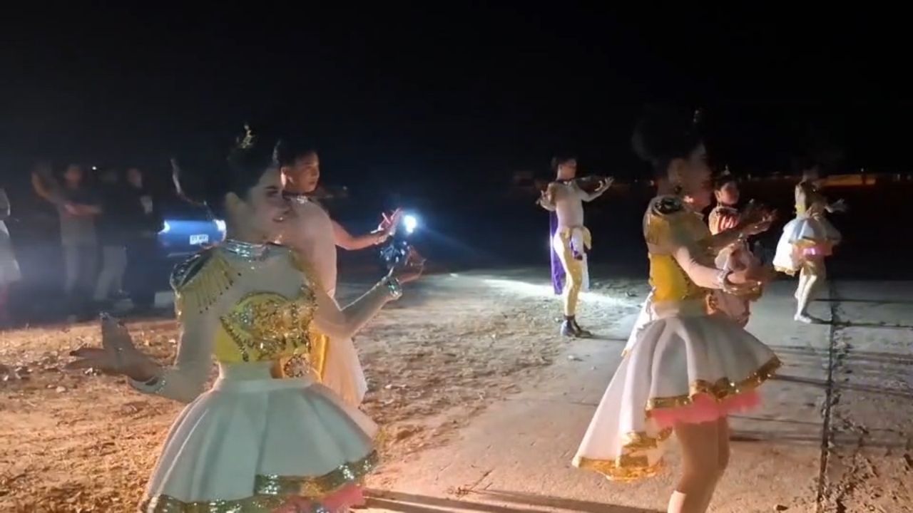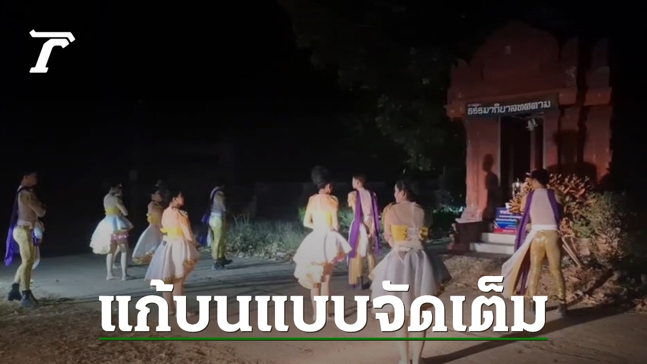 ไม่ได้มีใครจ้าง วงลูกทุ่งประกอบหางเครื่อง อบต.หนองสนิท จ.สุรินทร์ จัดทีมครบวงมาแก้บนกลางดึก บริเวณหน้า "ศาลปู่ตา" หลังคว้ารางวัลชนะเลิศตามที่บนบาน