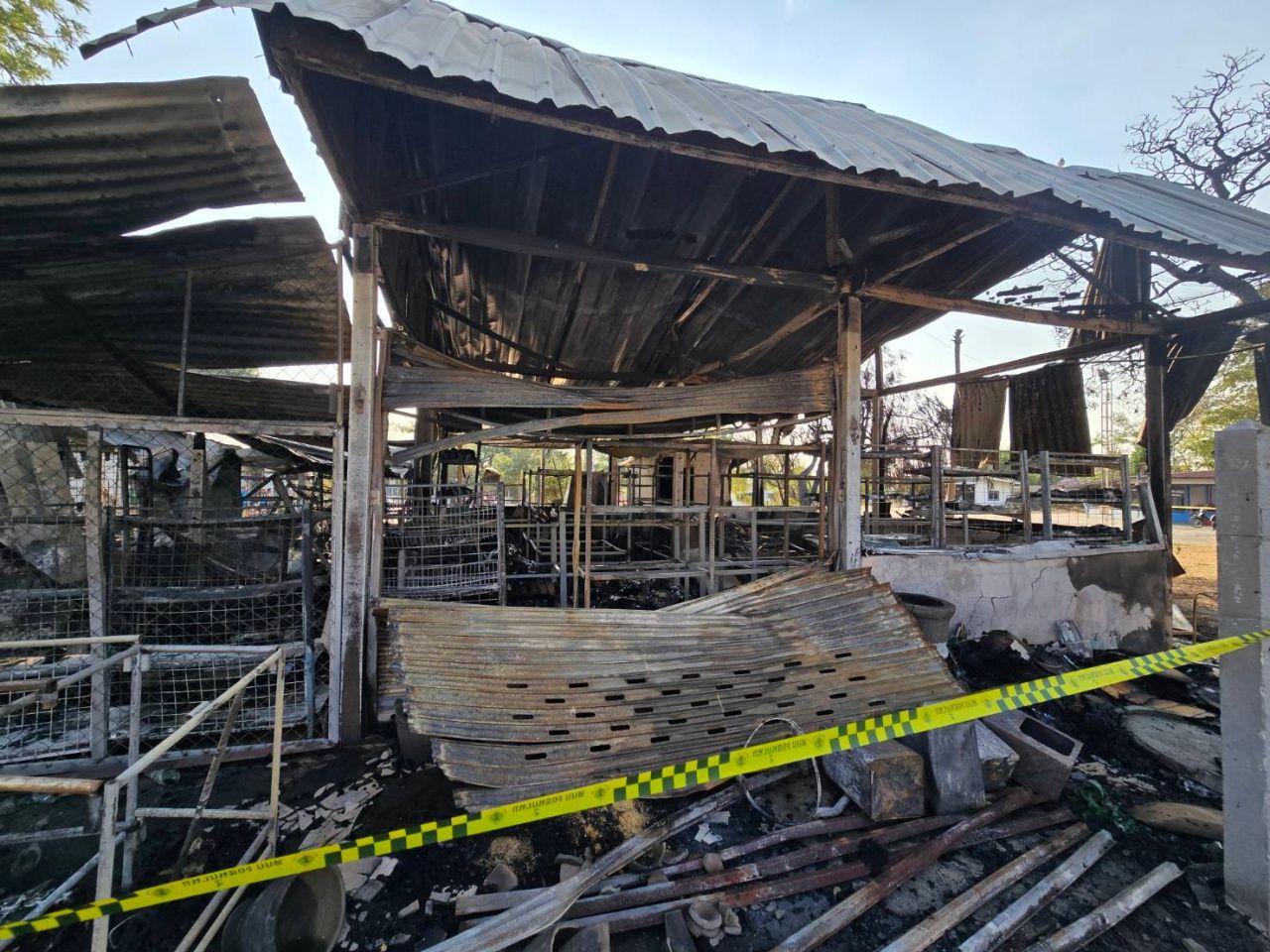 ที่เกิดเหตุอยู่ใกล้ศาลากลางของหมู่บ้าน พบเพลิงกำลังลุกไหม้บ้านชั้นเดียวครึ่งปูนครึ่งไม้ เปิดเป็นร้านขายของเบ็ดเตล็ด รถดับเพลิงพยายามฉีดน้ำเข้าระงับเหตุ แต่ไฟลุกไหม้เกือบทั้งอาคารแล้ว เจ้าหน้าที่ใช้เวลาประมาณ 40 นาที จึงสามารถควบคุมเพลิงเอาไว้ได้