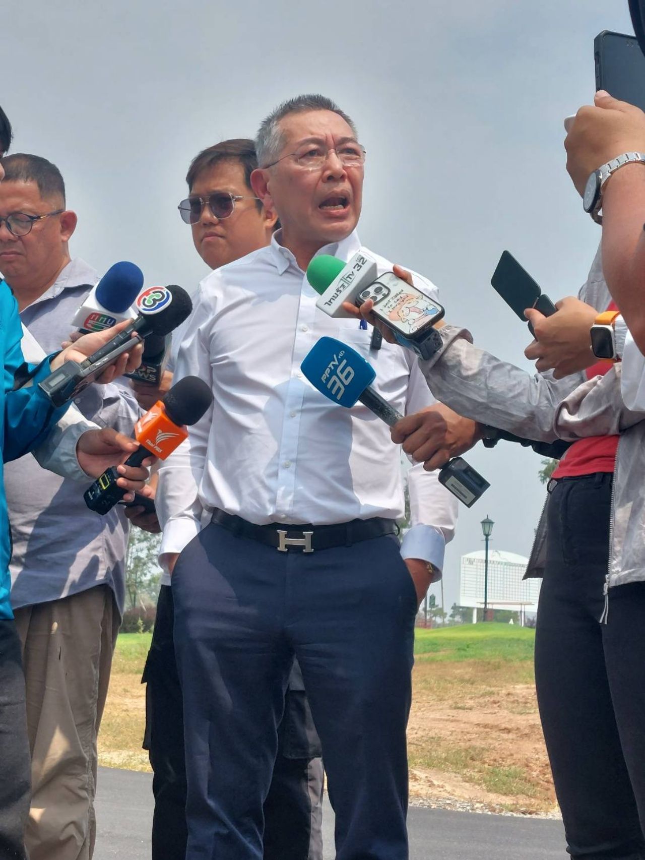 อย่างไรก็ตาม ระหว่างนายธนดล ยืนให้สัมภาษณ์อยู่ นายคารม พลกลาง อดีต สส. ภูมิใจไทย และรองโฆษกประจำสำนักนายกรัฐมนตรี พร้อมด้วย นายชนินทร์ แก่นหิรัญ ทนายความที่ดูแลสนามกอล์ฟ ได้มามายืนสังเกตการณ์ด้วย