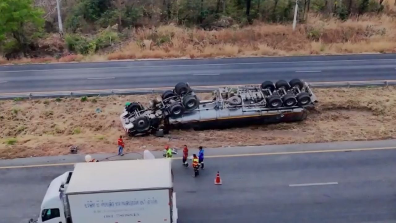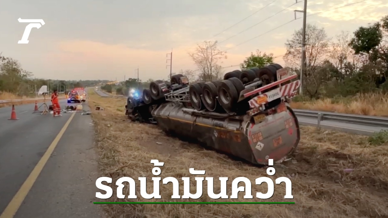 ระทึก รถพ่วงบรรทุกน้ำมัน 43,000 ลิตร หลุดโค้งพลิกคว่ำหงายท้อง คนขับคอหักเสียชีวิต ตำรวจเร่งติดต่อบริษัทเจ้าของรถให้นำอุปกรณ์และรถมาเปลี่ยนถ่าย