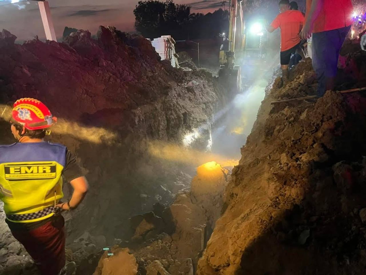 วันที่ 27 ก.พ. 68 มีรายงานว่า เมื่อเวลา 18.30 น. วันที่ 26 ก.พ. ที่ผ่านมา พ.ต.อ.บุญโปรด ประเสริฐศักดิ์ ผกก.สภ.ปักธงชัย นครราชสีมา รับแจ้งเกิดเหตุดินถล่มทับคนงานวางท่อที่บ้านหัวนา ต.โคกไทย อ.ปักธงชัย จึงรุดไปตรวจสอบพร้อมประสานเจ้าหน้าที่หน่วยกู้ภัย ฮุก 31 เข้าช่วยเหลือ