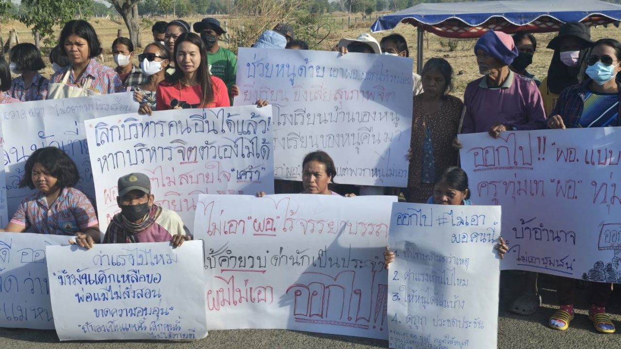 สืบเนื่องจากมีเด็กนักเรียนถ่ายคลิปเสียงของ ผอ. ขณะดุด่าเด็กนักเรียนด้วยถ้อยคำไม่สุภาพ และยังทำโทษนักเรียนแบบทรมาน คือ การยืนตากแดดไม่ให้ดื่มน้ำนานกว่า 3 ชม. จนชาวบ้านต่างไม่พอใจ โดยเฉพาะการร้องเรียนไปที่เขตพื้นที่การศึกษาร่วม 3 เดือนแต่เรื่องเงียบ