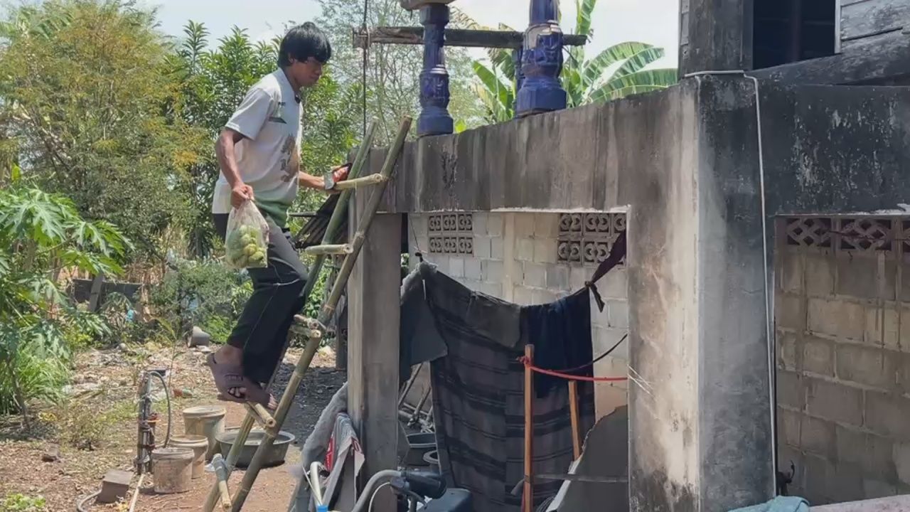 โดยนายน้ำฝนได้พาผู้สื่อข่าวไปดูที่เก็บขยะรีไซเคิล ที่กองอยู่ใต้บันไดข้างบ้าน หลังขี่จักรยานคู่ใจต่อพ่วงท้ายออกหาเก็บมารวมกันไว้ขายให้พ่อค้ารับซื้อของเก่า ที่จะมา 10-15 วัน/ครั้ง จากนั้นได้พาเดินดูสภาพการเป็นอยู่รอบบ้าน และภายในบ้าน ในห้องนอนที่อยู่บนชั้นสองกับน้าชาย ซึ่งต้องใช้บันไดไม้ไผ่ปีนขึ้นลงทุกวัน ส่วนยายนอนอยู่ชั้นล่าง ในการหุงหาอาหารก็ใช้เตาฟืน ห้องน้ำเป็นแบบนั่งยองๆ และบริเวณชั้นล่างมีกองเสื้อผ้าเก่าๆ ที่ชาวบ้านนำมาบริจาคให้ยาย และคนในครอบครัวได้สวมใส่ ออกไปหารับจ้างตัดอ้อย ปลูกและขุดมัน พอได้เงินมาซื้อกับข้าวกิน