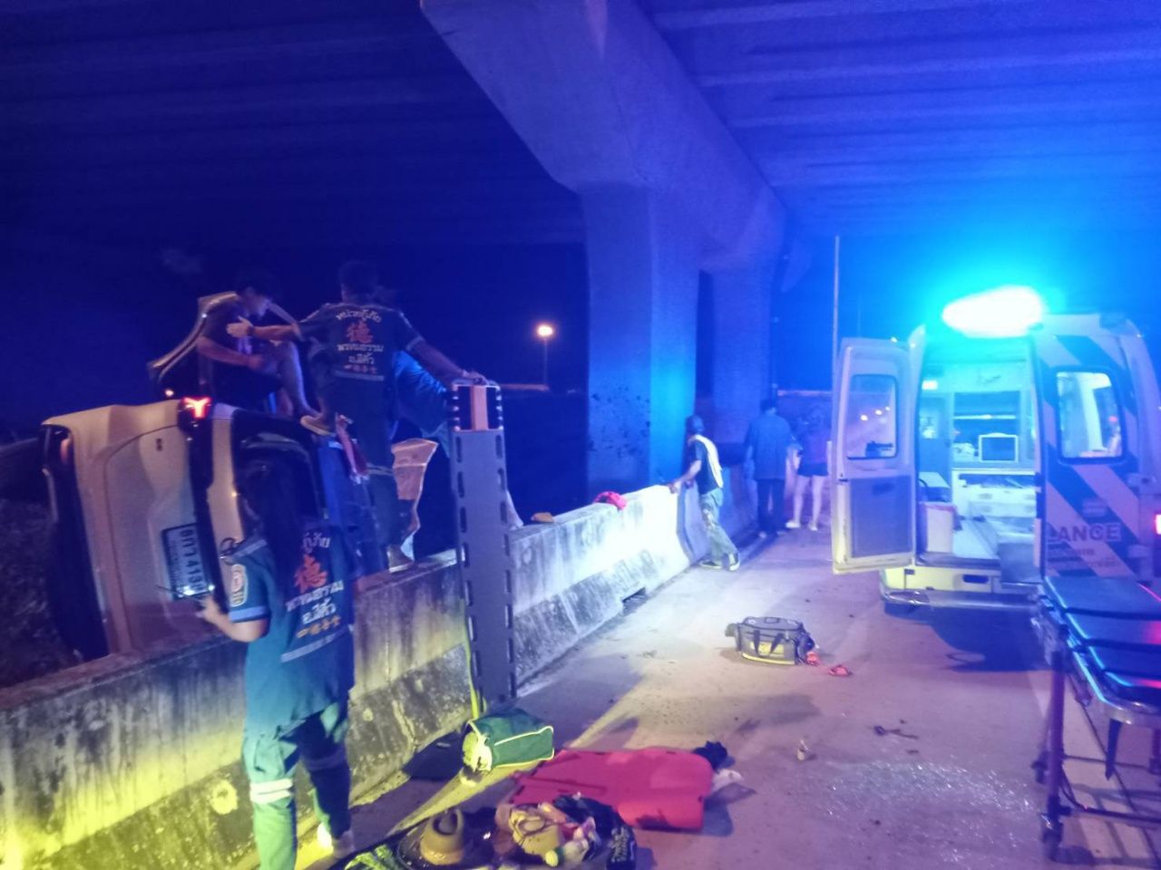 สภาพรถ "ด้งเด้ง" หรือ "จ่าลอด" นักแสดงดัง ไทบ้านเดอะซีรีส์ พังยับ ตกมอเตอร์เวย์ M6 ที่นครราชสีมา อาการล่าสุดซี่โครงหัก กระเพาะปัสสาวะฉีกขาด ลมออกในเยื่อหุ้มปอด ยังอยู่ ICU