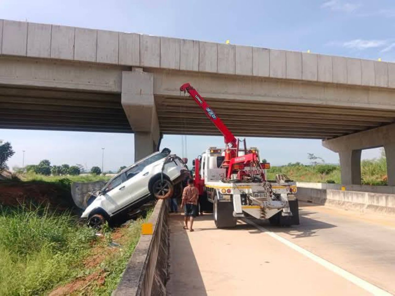 โดยศูนย์วิทยุกู้ภัยพรหมธรรม อ.สีคิ้ว ได้รับแจ้งเหตุเมื่อเวลา 03.46 น. วันนี้ (9 พ.ค.68) จึงส่งทีมกู้ชีพ-กู้ภัยฯ ลงพื้นที่ไปตรวจสอบเพื่อให้ความช่วยเหลือ โดยพบรถยนต์อเนกประสงค์ ยี่ห้อโตโยต้าฟอร์จูนเนอร์ สีขาว ทะเบียน 8 กว 4138 กรุงเทพมหานคร พุ่งตกลงจากมอเตอร์เวย์ M6 มาที่พื้นด้านล่างใกล้กับสะพาน ในสภาพพลิกตะแคงข้าง หน้ารถพังเสียหายจนถึงห้องโดยสาร