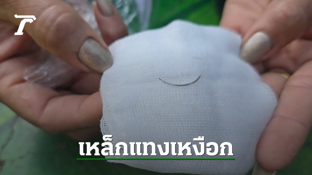 น.ส.รุ่งนภา เล่าด้วยว่า เหล็กที่ผ่าออกมาได้หมอระบุไม่ได้ว่าเป็นขอเบ็ดหรือไม่ เพราะลักษณะส่วนปลายของเหล็กจะแหลม ไม่มีขอหรือเงี่ยงเหมือนขอเบ็ดทั่วไป แต่มีร่องรอยของรูสอยเข็มอยู่