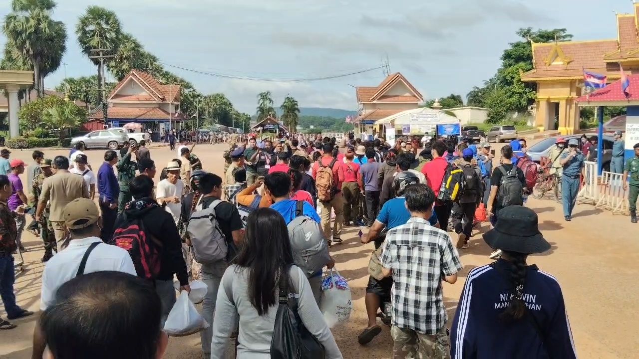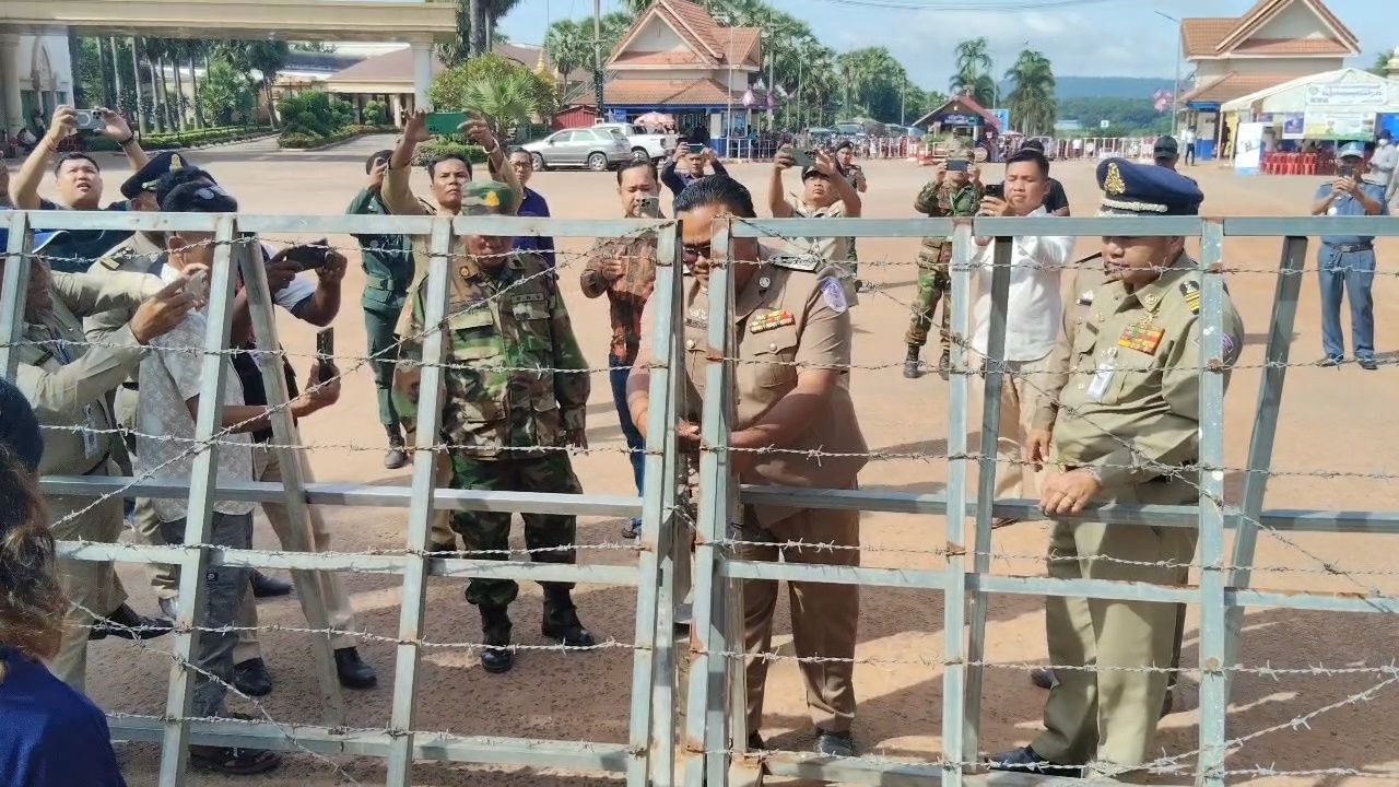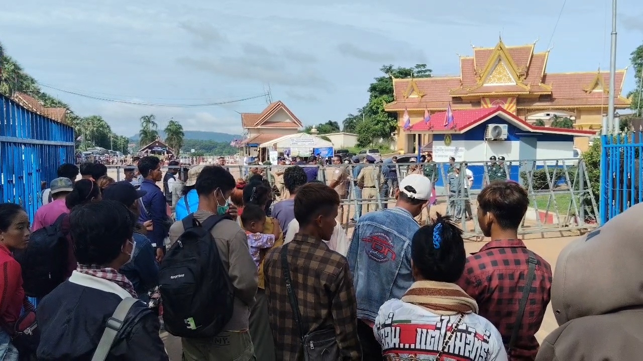 เมื่อเวลา 09.00 น. วันที่ 20 มิถุนายน 2568 ที่ประตูด่าน จุดผ่านแดนถาวรช่องจอม ต.ด่าน อ.กาบเชิง จ.สุรินทร์ หลังทางการไทยมีมาตรการตอบโต้กัมพูชา โดยจะมีการเปิดด่าน สัปดาห์ละ 3 วัน คือ วันจันทร์-พุธ-ศุกร์ เวลา 8 โมงเช้า ถึง บ่าย 3 โมง ซึ่งหลังจากเจ้าหน้าที่ไทยเปิดประตูด่านเวลา 8 โมงเช้า จากนั้นเวลา 9 โมงเช้า เจ้าหน้าที่ของกัมพูชา ถึงเวลาเปิดล็อกกุญแจแผงเหล็กลวดหนามที่กั้นประตูฝั่งกัมพูชาออกตามเวลาเช่นเดิม ก่อนที่แรงงานชาวกัมพูชาที่มาจากในพื้นที่ จ.สุรินทร์ และส่วนใหญ่ที่มาจากต่างพื้นที่และต่างจังหวัด ต่างมายื่นเอกสารหนังสือเดินทางต่างๆ กับ ตม.สุรินทร์ ก่อนจะพากันข้ามแดนกลับกัมพูชาอย่างคึกคัก ส่วนคนไทยที่ข้ามแดนลดน้อยลงมาก