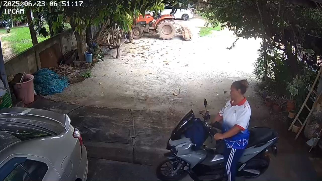 หลักฐานสำคัญจากกล้องวงจรปิดภายในบ้านพัก หมู่ 15 ตำบลสาวะถี เมื่อเวลา 06.50 น. วันที่ 23 มิ.ย. 68 บันทึกภาพนางสาวจงกลรัตน์ ขณะสวมเสื้อยืดแขนสั้นลายสีน้ำเงินขาว กางเกงวอร์มขายาวสีน้ำเงิน สวมหมวกกันน็อก และขี่รถจักรยานยนต์ฮอนด้า รุ่น ADV 160CC สีเทา ทะเบียน 2กพ 9650 ขอนแก่น ออกจากบ้านผ่านทางหลังบ้าน พร้อมถือถุงเสื้อผ้าติดตัวไป จากนั้นไม่มีใครพบเห็นอีก
