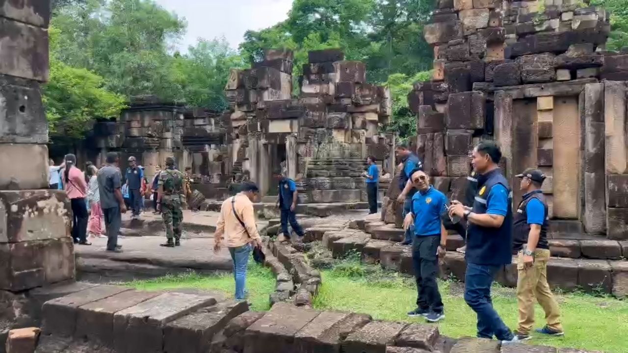 วันที่ 3 ก.ค. 68 ผู้สื่อข่าวรายงานบรรยากาศที่ปราสาทตาเมือนธม ต.ตาเมียง อ.พนมดงรัก จ.สุรินทร์ หลังจาก พล.ท.บุญสิน พาดกลาง แม่ทัพภาคที่ 2 ได้เชิญชวนคนไทยมาเที่ยวปราสาทตาเมือนธม ปราสาทตาเมือนโต๊ด และปราสาทตาควาย อ.พนมดงรัก จ.สุรินทร์ สัมผัสความงดงามของแหล่งประวัติศาสตร์สำคัญตลอดแนวชายแดน จ.สุรินทร์ บนแผ่นดินไทย ส่งเสริมการท่องเที่ยว กระตุ้นเศรษฐกิจ สร้างรายได้ให้ชุมชน เพิ่มพลังใจคนท้องถิ่น