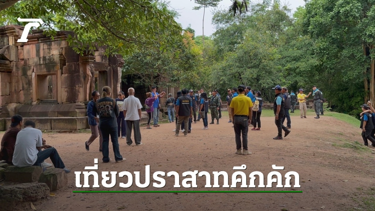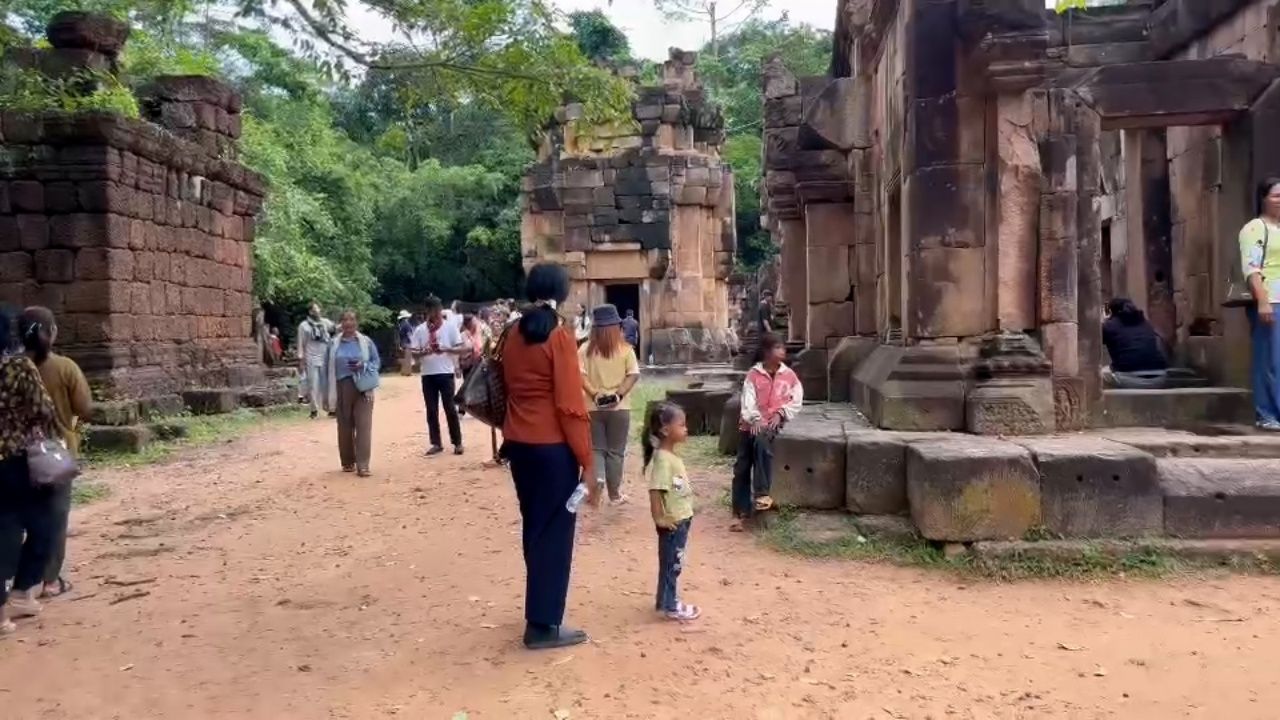 นักท่องเที่ยวแห่ชม "ปราสาทตาเมือนธม" คึกคัก หลังแม่ทัพภาคที่ 2 ชวนเที่ยวปราสาททั้ง 3 แห่ง ส่วนทหารเขมรที่ชี้หน้าด่าทหารไทย ยังคงวนเวียนสังเกตการณ์ในตัวปราสาทเช่นเดิม