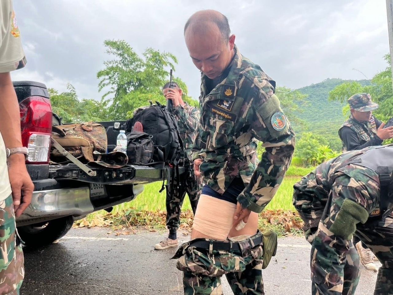 หลังรับแจ้งเหตุ นายสุธรรมได้สั่งการให้เจ้าหน้าที่ชุดลาดตระเวนเร่งช่วยเหลือนำตัวผู้บาดเจ็บลงจากเขาทันที เนื่องจากจุดเกิดเหตุอยู่ในพื้นที่ป่าลึกและเป็นหน้าผาสูงชัน โดยใช้เวลากว่า 3 ชั่วโมงจึงสามารถลำเลียงตัวผู้บาดเจ็บถึงตีนเขาฝั่งอำเภอสีชมพูในเวลา 17.00 น. ก่อนประสานหน่วยกู้ภัยนำตัวส่งโรงพยาบาลชุมแพเพื่อรับการรักษาอย่างเร่งด่วน เบื้องต้นแพทย์ตรวจพบกระสุนฝังในต้นขาซ้าย ลึกประมาณ 4 เซนติเมตร แต่ยังไม่ถึงกระดูก และอยู่ระหว่างเตรียมการผ่าตัดเพื่อเอากระสุนออก
