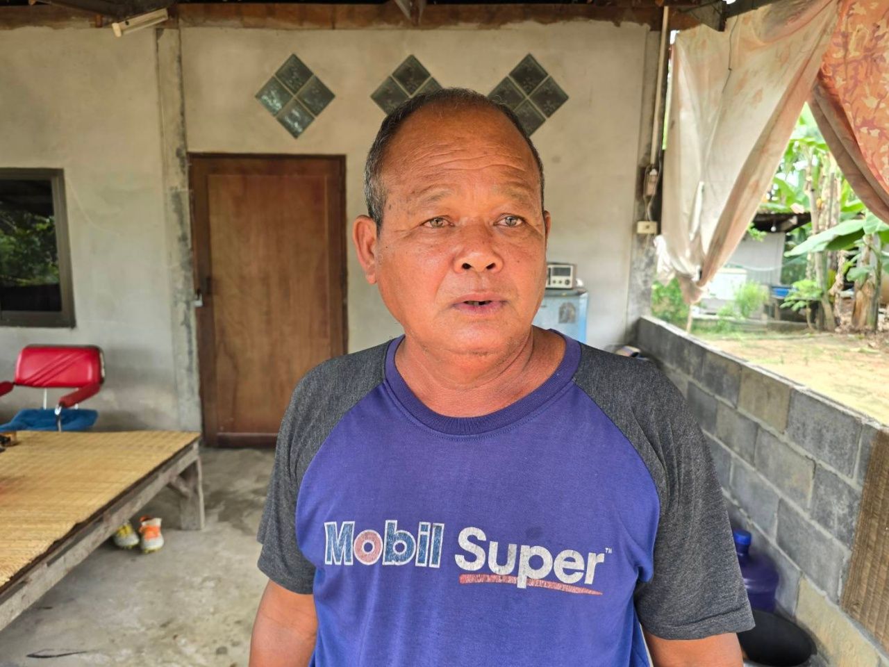 นายเสงี่ยมเล่าว่า เมื่อวันที่ 24 ก.ค. ซึ่งเป็นวันปะทะกันวันแรก ตอนนั้นกำลังเตรียมอพยพตามที่เจ้าหน้าที่มาแจ้งขนข้าวของออกแล้วล็อกบ้านเอาไว้ ระหว่างนั้นตนอยู่บ้านเพื่อนบ้าน ได้มีชาวบ้านบอกว่ามีดินพุ่งออกมาจากบ้าน สงสัยบ้านถูกยิง จึงรีบไปดูรอบบ้านพบว่ายังปกติดี แต่ไม่ได้เปิดเข้าไปในบ้าน พอวันนี้กลับมาดูบ้านเปิดกุญแจเข้าไป ตกใจมากเมื่อเห็นสภาพบ้าน.