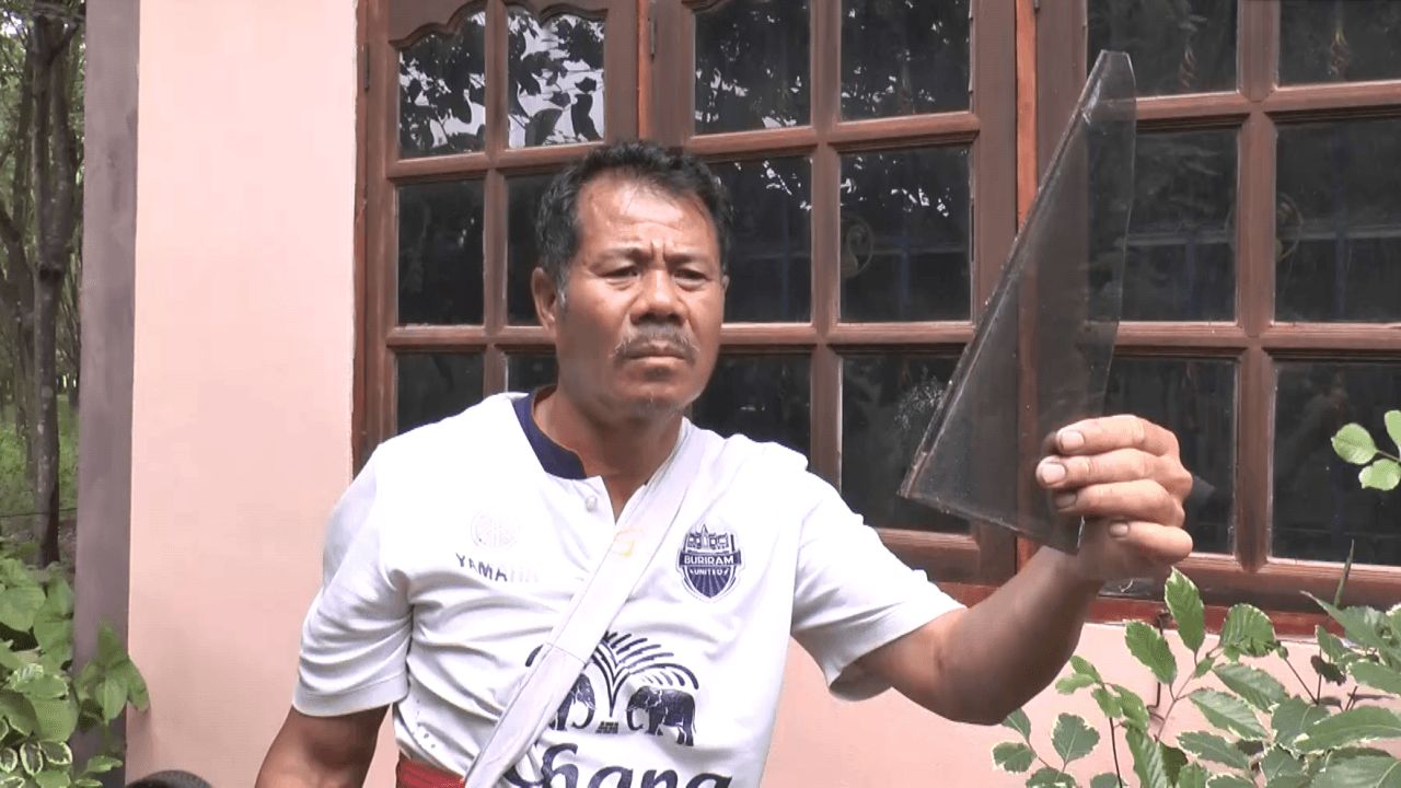 นายทูน เพ็งที เจ้าของบ้านซึ่งอยู่ใกล้จุดระเบิดตก เล่าถึงนาทีเฉียดตายว่า เมื่อช่วงประมาณบ่าย 2 วานนี้ (26 ก.ค. 68) หลังขี่ จยย.พ่วงข้างกลับจากไปขายยางก้อนถ้วย เพื่อเก็บเงินติดตัวเตรียมจะพาภรรยาและลูกย้ายไปอยู่บ้านญาติ แต่จอดรถได้ไม่ถึง 10 นาที ก็เห็นระเบิดลอยเฉี่ยวปลายต้นยางพาราไปนิดเดียวก่อนตกลงกลางสวนยาง ห่างจากบ้านไม่ถึง 50 เมตร เสียงดังตู้มอย่างแรง จนตัวบ้านสั่นสะเทือน และมีควันพวยพุ่งเป็นวงกว้าง สร้างความตื่นตกใจให้กับภรรยาและลูกที่อยู่ในบ้านเป็นอย่างมาก จนทำอะไรไม่ถูก ตนก็ได้แต่ตะโกนบอกภรรยากับลูกให้รีบออกจากบ้านเพราะกลัวบ้านพังทับ