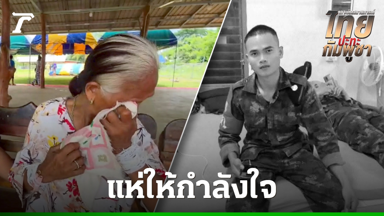 พ่อแม่ช็อกกลางศูนย์อพยพ หลังเจ้าหน้าที่แจ้งว่า พลทหารธีรยุทธ กระจ่างทอง เสียชีวิตในสนามรบที่ จ.ศรีสะเกษ ชาวบ้านที่อยู่ในศูนย์อพยพต่างเอาด้ายมาผูกแขนให้กำลังใจ