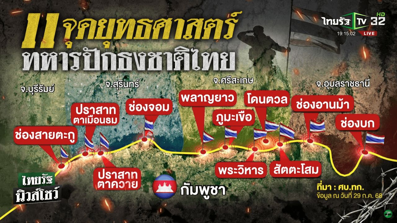 เปิด 11 จุดยุทธศาสตร์ ทหารไทยสู้สุดใจปักธงชาติไทย ในสมรภูมิชายแดนไทย-กัมพูชา ขณะที่ยอดผู้อพยพมีจำนวนทั้งสิ้น 188,729 คน