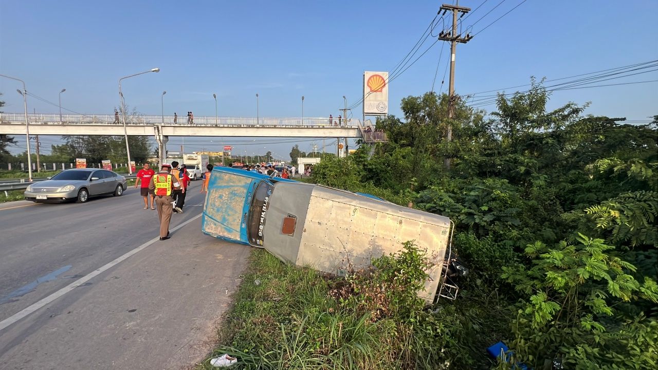 อุบัติเหตุเตือนภัย รถรับ-ส่งนักเรียนพลิกคว่ำหน้า รร.เตรียมอุดมศึกษาพัฒนาการ จ.ร้อยเอ็ด หลังรถกระบะหักหลบรถจักรยานยนต์ขี่ปาดหน้า เสียหลักพุ่งชนท้ายรถรับส่งนักเรียน เด็กบาดเจ็บหลายราย