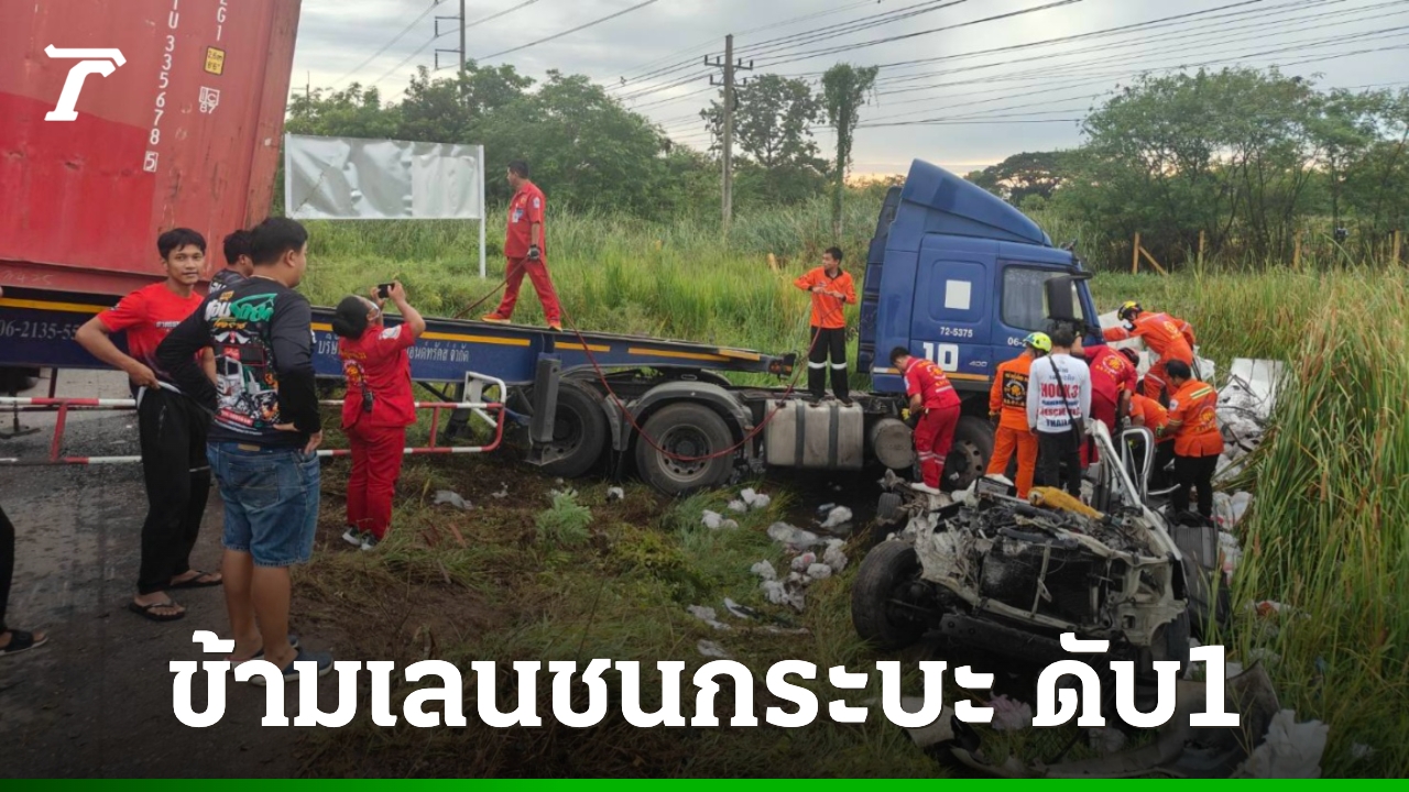 เกิดอุบัติเหตุ รถพ่วงเทรลเลอร์ พุ่งข้ามเลนชนกระบะ บนถนนเลี่ยงเมือง ขาเข้าเมืองนครราชสีมา สลด สาวแม่ลูกอ่อนถูกอัดก็อบปี้ดับ พบฟิล์มตรวจครรภ์อยู่ในซากรถ