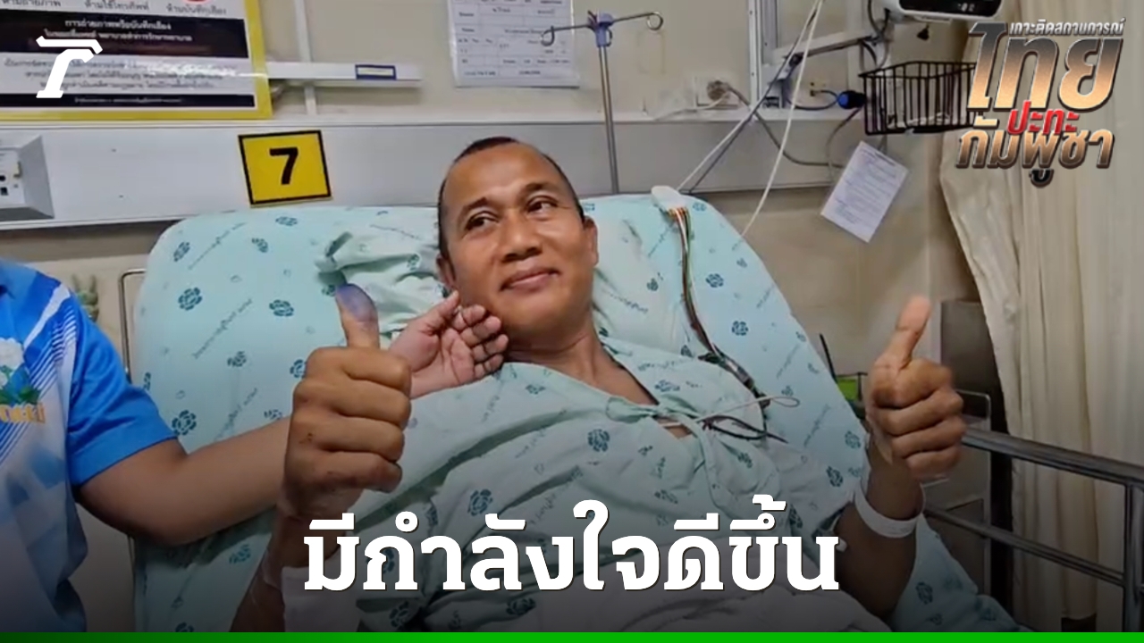 อัปเดตอาการ "ส.อ.ธีรพล" เหยียบทุ่นระเบิดขาขาด ขณะลาดตระเวนพื้นที่ปราสาทตาเมือนธม กำลังใจดี มีภรรยาเฝ้าอยู่ไม่ห่าง พร้อมขอบคุณทุกฝ่ายที่ห่วงใย ด้าน ผอ.รพ.สุรินทร์ เผย กรุ๊ปเลือดเพียงพอแน่นอน