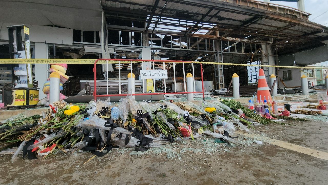 วันที่ 13 ส.ค. 68 ผู้สื่อข่าวได้เดินทางไปที่ปั๊มน้ำมันบ้านผือ ซึ่งถูกลูกระเบิดตกลงมาที่ร้านสะดวกซื้อภายในปั๊ม พบว่าบรรยากาศทั่วไปยังมีประชาชนที่เดินทางผ่านไปมาจุดนี้ เข้ามาดูสภาพร้านสะดวกซื้อ และร่วมวางดอกไม้สีขาวเพื่อไว้อาลัยให้กับผู้เสียชีวิต
