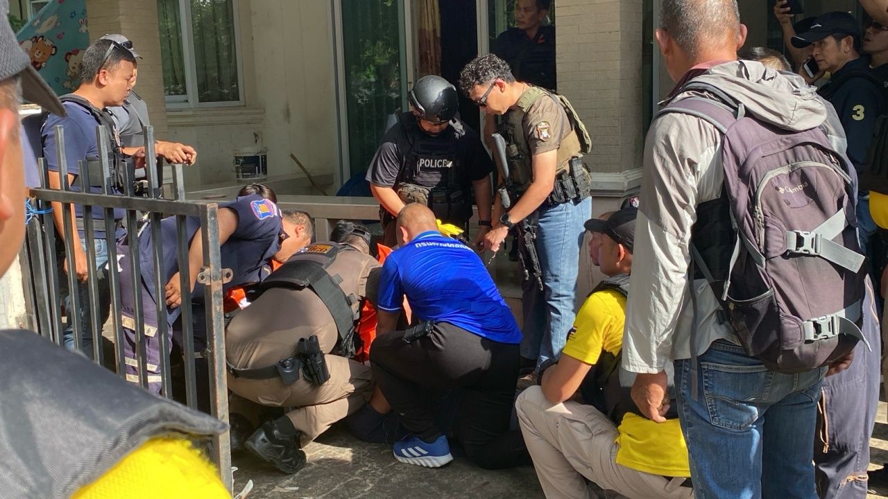 ทางเจ้าหน้าที่ฯ จึงประสานขอกำลังเสริมจากชุดสืบจังหวัด ชุดสืบตำรวจภูธรภาค 3 และกำลังจากฝ่ายปกครองอำเภอเมือง เพื่อร่วมติดตามตัวผู้ก่อเหตุ จนทราบว่าหลบหนีไปอยู่ที่บ้านหลังหนึ่ง ต.มะเริง อ.เมืองนครราชสีมา และยังใช้อาวุธมีดจี้จับลูกทั้ง 3 คน เป็นตัวประกันด้วย ซึ่งเจ้าหน้าที่ตำรวจได้กันพื้นที่ไม่ให้ผู้ที่ไม่เกี่ยวข้องเข้าไป เพราะเกรงว่าผู้ก่อเหตุจะยิ่งเครียด จนลงมือทำร้ายลูกทั้ง 3 คน ก่อนจะปิดล้อมกดดัน และสามารถช่วยเด็กทั้ง 3 คนออกมาได้ ส่วนผู้ก่อเหตุยังไม่ยอมเข้ามอบตัว