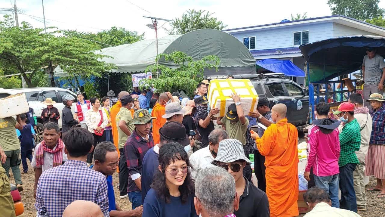ทั้งนี้ มีความเคลื่อนไหวในฝั่งกัมพูชาเมื่อมีพระผู้ใหญ่ เจ้าคณะเขต เจ้าอาวาส และพระสังฆาธิการจากหลายจังหวัด อาทิ จังหวัดบันเตียเมียนเจย (บันทายมีชัย), พระตะบอง, อุดรมีชัย, พระวิหาร, เสียมราฐ และโพธิ์สัตว์ เดินทางมาร่วมลงพื้นที่ พร้อมนำสิ่งของทั้งอาหารสด อาหารแห้ง เสื้อผ้า และของใช้จำเป็นอื่น ๆ มามอบให้แก่ชาวบ้านและเด็ก ๆ ที่อยู่ตามแนวชายแดน รวมถึงเจ้าหน้าที่ทหาร และตำรวจกัมพูชาที่ปฏิบัติหน้าที่อยู่ในบริเวณบ้านหนองหญ้าแก้ว