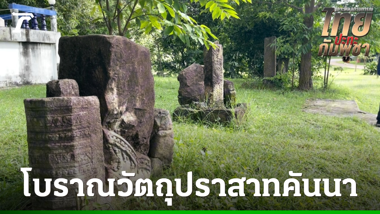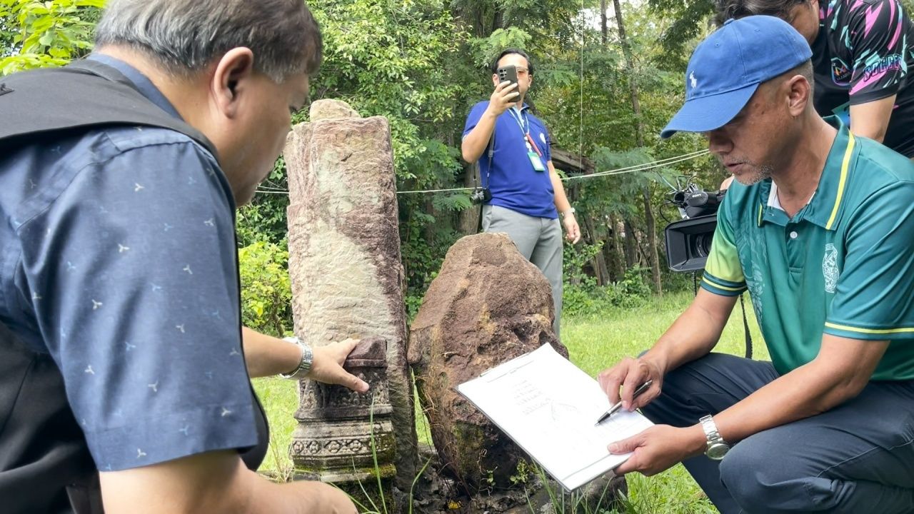 ผอ.สำนักศิลปากรที่ 10 ตรวจสอบโบราณวัตถุปราสาทคันนา ชิ้นส่วนสถาปัตยกรรมสมัยพุทธศตวรรษที่ 15-16 หรือเก่าประมาณ 900 ปี ที่ถูกนำมาเก็บไว้ที่วัดตั้งแต่ปี พ.ศ.2515 ชาวบ้านวอนสร้างกำแพงกั้นชายแดนเพื่อลูกหลานในอนาคต