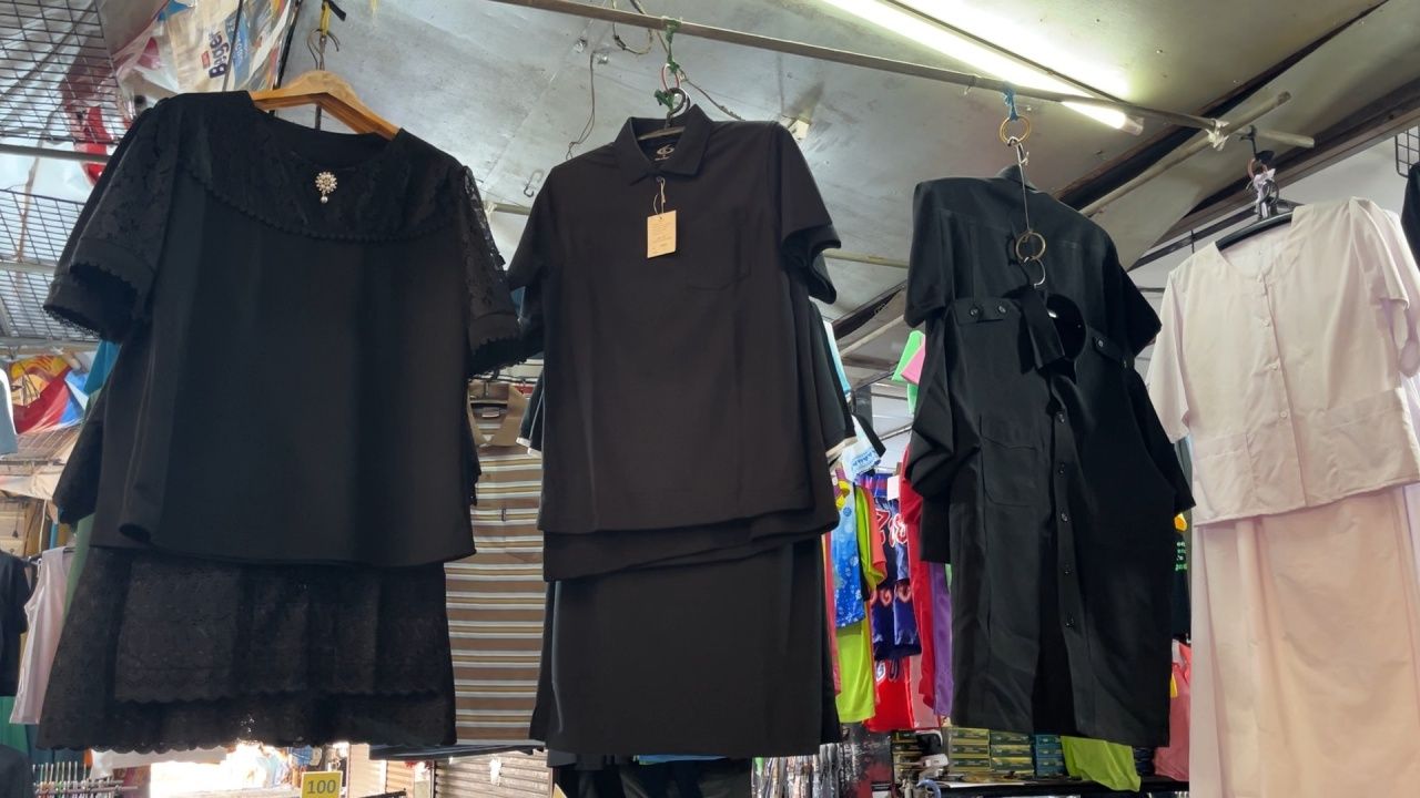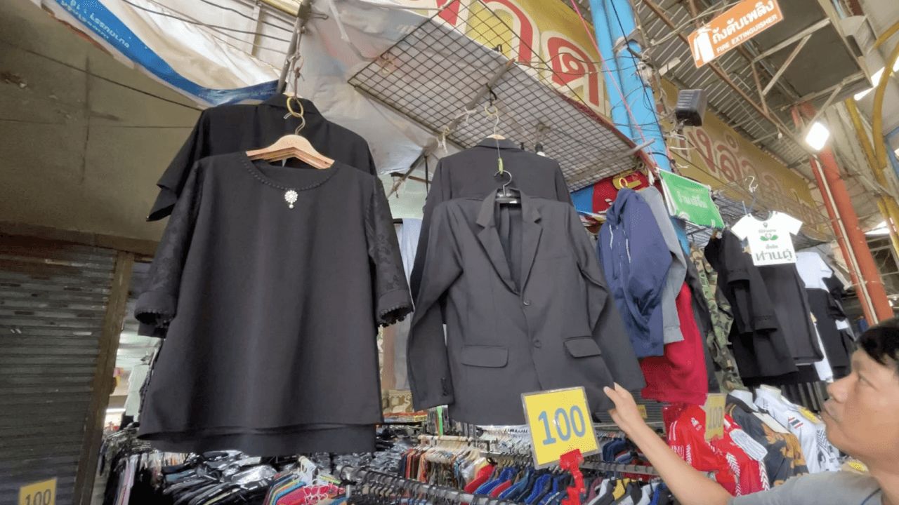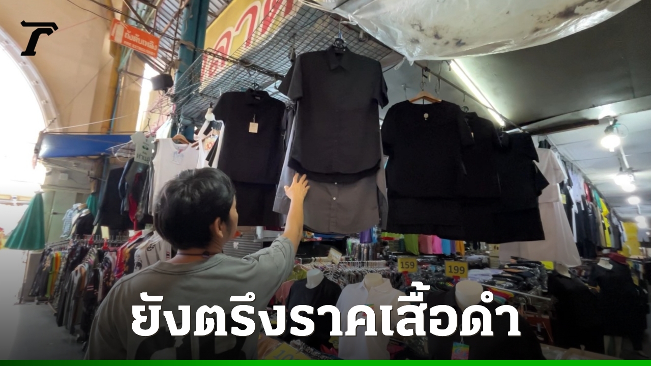 ร้านค้าเสื้อผ้าสำเร็จรูปในตลาด จ.ขอนแก่น ยังตรึงราคา "เสื้อผ้าสีดำ" หลังโรงงานผู้ผลิตแจ้งปรับเพิ่มต้นทุนเสื้อผ้าทุกประเภท ขณะที่ประชาชนเริ่มออกมาหาซื้อเสื้อดำไปสวมใส่ จนบางแบบเริ่มหายาก
