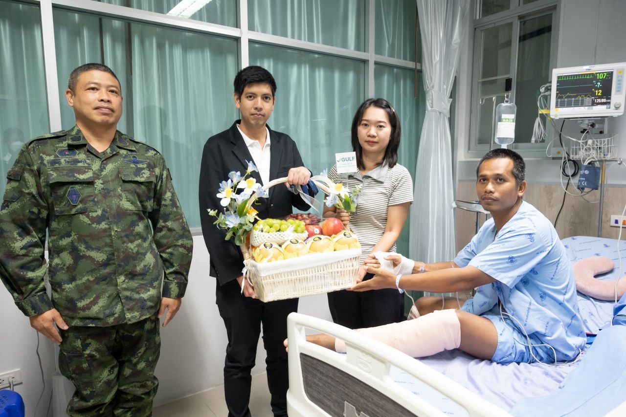 โดยเงินจำนวนนี้มาจาก "กองทุน 100 ล้านบาท" ที่ GULF จัดตั้งขึ้นเพื่อดูแลทหารที่บาดเจ็บและเสียชีวิตจากเหตุการณ์ชายแดนไทย-กัมพูชา โดยมี พันเอก สุรังค์ วิทยาวงศรุจิ ผู้อำนวยการโรงพยาบาลค่ายสรรพสิทธิประสงค์ ให้การต้อนรับ