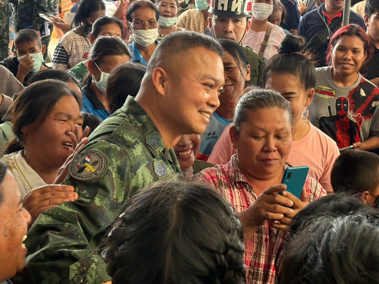 วันที่ 13 ธ.ค. 68 พลโทบุญสิน พาดกลาง หรือ แม่ทัพกุ้ง อดีตแม่ทัพภาคที่ 2 ที่ปรึกษาผู้บัญชาการทหารบก เดินทางมายังศูนย์อพยพแห่งหนึ่ง ในจังหวัดสุรินทร์ โดยพบปะให้กำลังใจกับประชาชน พร้อมมอบสิ่งของและผ้าห่มกันหนาวให้กับผู้สูงอายุ ซึ่งมีประชาชนมารุมล้อมขอถ่ายรูปกับอดีตแม่ทัพภาคที่ 2 โดยมีผู้หญิงคนหนึ่งโน้มตัวไปและหอมแก้ม พลโทบุญสิน ด้วย
