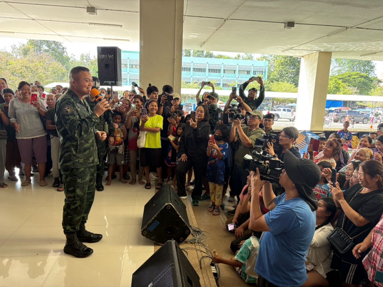 พลโทบุญสิน อดีตแม่ทัพภาคที่ 2 ให้กำลังใจประชาชนที่ศูนย์อพยพ พร้อมย้ำสิ่งที่กองทัพไทยกำลังดำเนินการอยู่ คือการปกป้อง ไม่ใช่การไปรุกราน ปม “ทรัมป์” บอกเป็นเรื่องความมั่นคง ให้รัฐบาลพิจารณา