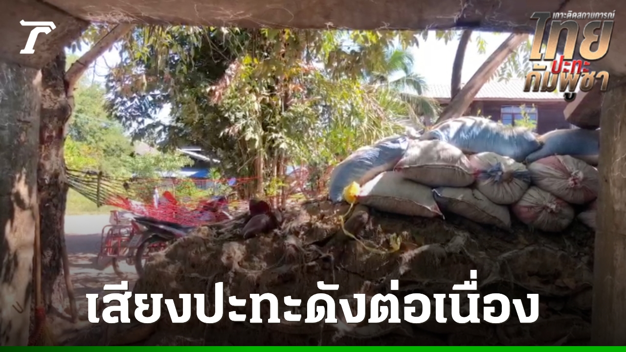 เมื่อวันที่ 24 ธ.ค. 68 ผู้สื่อข่าวรายงานสถานการณ์สู้รบบริเวณชายแดนไทยกัมพูชา ที่อำเภอกันทรลักษ์ จังหวัดศรีสะเกษ ตลอดทั้งวันยังคงได้ยินเสียงปืนใหญ่และจรวด BM-21 ปืน ค. และ ปรส. ยิงตอบโต้กันระหว่างทหารไทยและกัมพูชา บริเวณพื้นที่ช่องตาเฒ่า เขาพระวิหาร