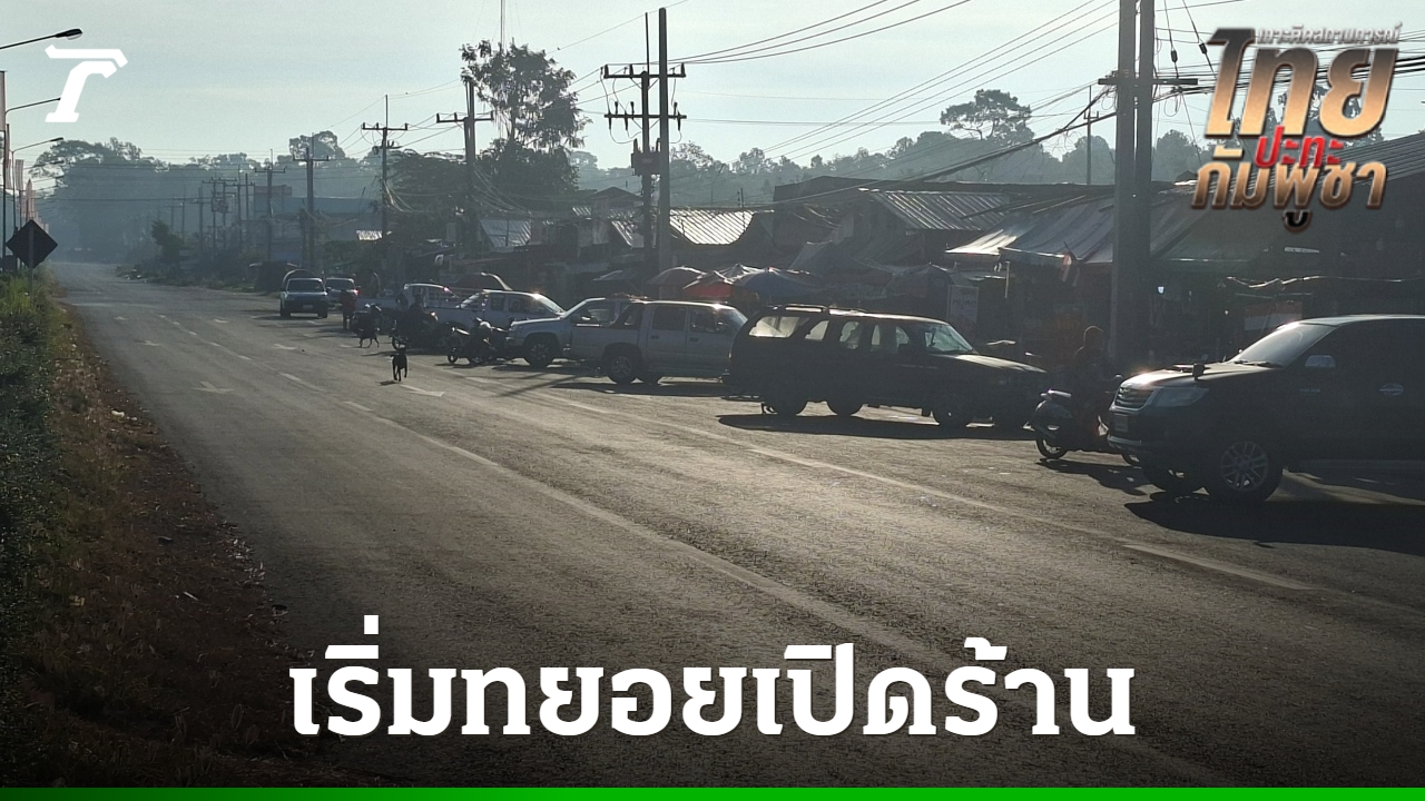 ตลาดชายแดนช่องจอม เริ่มกลับมาคึกคัก พ่อค้าแม่ค้าทยอยกลับมาเปิดร้าน หลัง จ.สุรินทร์ ประกาศให้เข้าพื้นที่ หวังหารายได้ช่วงปีใหม่ชดเชย วอนคนไทยช่วยกันอุดหนุน และขอให้ทหารทุกนายกลับบ้านปลอดภัย
