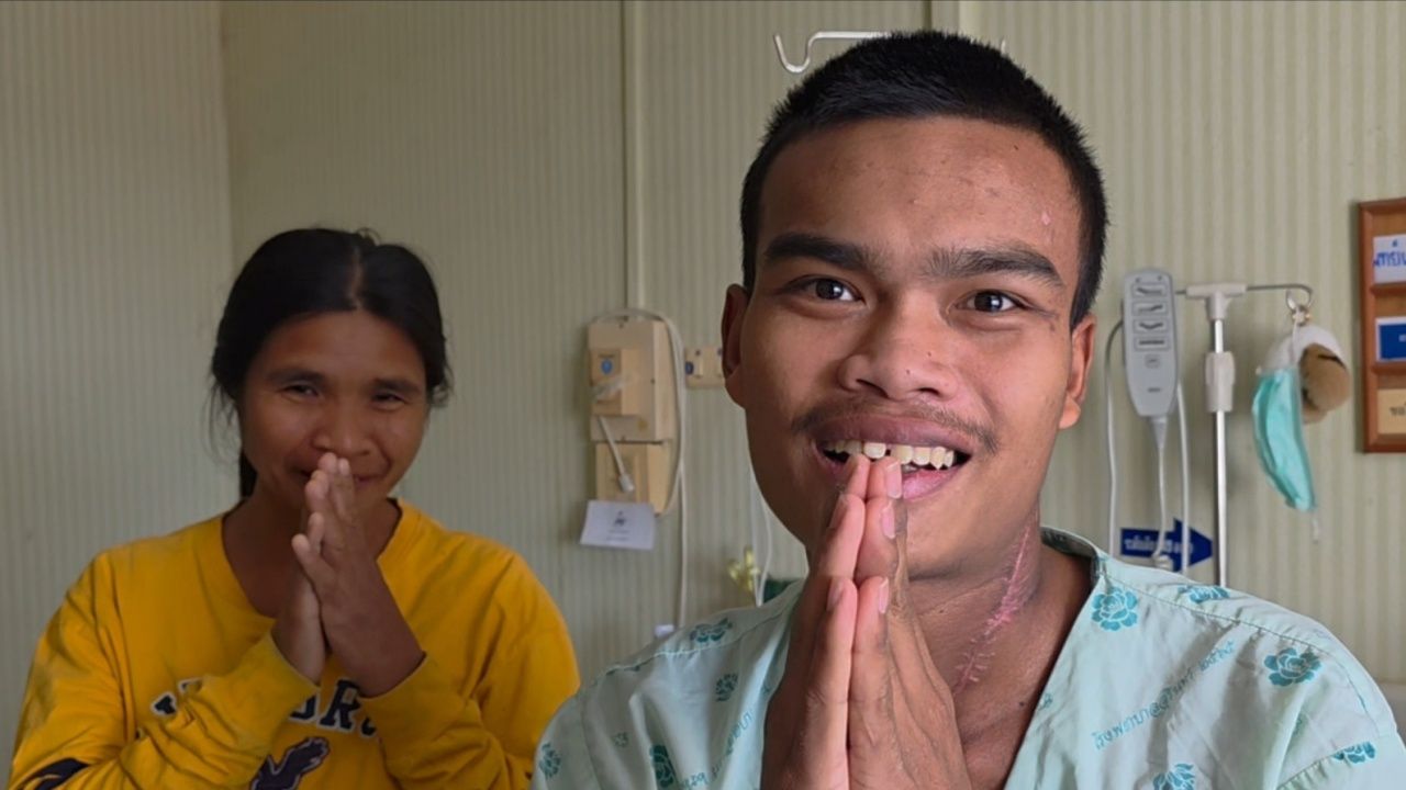 จากนั้นเพื่อนๆ ทหารจึงเร่งนำตนขึ้นเปลและส่งขึ้นเฮลิคอปเตอร์มารักษาตัวที่โรงพยาบาลสุรินทร์ ตั้งแต่วันที่ 9 ธันวาคม 2568 จนปัจจุบันนี้ ตนอาการดีขึ้น สอบถามคุณหมอเย็บประมาณ 200 เข็ม เพราะเป็นแผลฉกรรจ์ใหญ่มาก คุณหมอบอกว่าโชคดีที่ไม่โดนหลอดลม แต่ตนต้องยังเข้ารับการผ่าตัดรักษาไทรอยด์เป็นพิษอีก จึงยังไม่ได้กลับบ้าน และเหตุผลที่ตนไม่ไปรักษาตัวต่อที่โรงพยาบาลพระมงกุฎฯ เพราะตนนั้นเป็นห่วงครอบครัว เป็นห่วงแม่ เป็นห่วงน้อง และไกลบ้าน หากแม่จะต้องไปเยี่ยมตนนั้นต้องเดินทางไกลไม่สะดวก ตนจึงตัดสินใจรักษาอยู่ที่จังหวัดสุรินทร์ เพราะอย่างน้อยแม่ก็จะได้มาหาตนได้ ระยะทางจากบ้านตนอำเภอจอมพระถึงโรงพยาบาลสุรินทร์นั้นไปกลับก็ไม่ถึง 100 กม. หลังจากรักษาตัวเสร็จ ตนได้สมัครทหารนายสิบไว้แล้ว